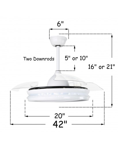 • Package Includes: Ceiling Fan with Light, Remote Control, Installation Manual, 2 Downrods (L5" and L10")