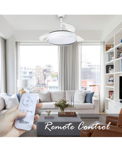 Brighten your home with this 42-inch ceiling fan light. This ceiling fan lamp features a metal frame with acrylic fan blades to give your home space a modern decor. The fan blades are retractable, and when the fan is turned on, the fan blades automatically extend out, and when the fan is turned off, the fan blades also retract. The freely contracted fan blades are not easy to accumulate dust and save space. If you want to clean the fan blade, just wipe it gently with a cloth dipped in water, which is very convenient. The led lamp has sufficient light and saves energy.