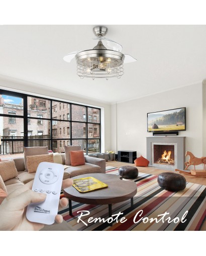 Illuminate your home with this 3-light crystal ceiling fan chandelier from Cusp Barn. This ceiling fan light with matte metal cage shade and features 5 bulbs (not included), 3 retractable blades, and a 3-speed motor. The blades extend when the fan is on, and the blades retract when the fan is off. Helical blades make wind speed more powerful. The three-speed motor adjusts the appropriate fan speed and is silent for life, providing a comfortable and quiet living environment.
