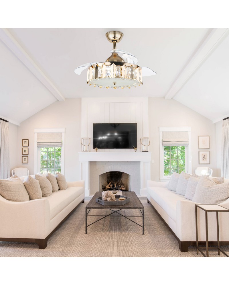 Blend different industrial and retro elements to create a low-key, luxurious family atmosphere with this round crystal shade ceiling fan. The built-in powerful copper motor is not only powerful but also fast and noiseless. Create a quiet and comfortable sleeping environment. This ceiling lamp fan is equipped with a round crystal lampshade, which refracts light to make the room softer and create a warm and comfortable living environment. The base is made of high-quality metal iron, which is strong and durable, so there is no need to worry about falling. 3 speed (low/medium/high)The choice, plus a remote control that controls all functions, make your life more convenient. Perfect for interior spaces such as bedrooms, living rooms, dining rooms, hallways, etc.