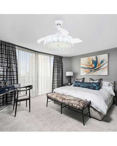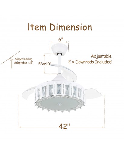 Blend different industrial and retro elements to create a low-key, luxurious family atmosphere with this round crystal shade ceiling fan. The built-in powerful copper motor is not only powerful but also fast and noiseless. Create a quiet and comfortable sleeping environment. This ceiling lamp fan is equipped with a round crystal lampshade, which refracts light to make the room softer and create a warm and comfortable living environment. The base is made of high-quality metal iron, which is strong and durable, so there is no need to worry about falling. 3 speed (low/medium/high)The choice, plus a remote control that controls all functions, make your life more convenient. Perfect for interior spaces such as bedrooms, living rooms, dining rooms, hallways, etc.