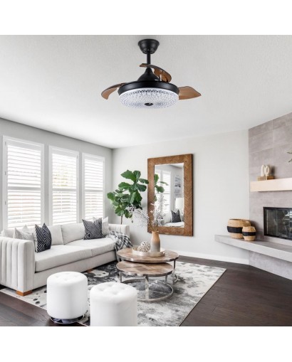 Illuminate your space and enjoy the fresh air with this 36-inch ceiling fan from Cusp Barn. This ceiling fan uses retractable blades, which extend out when the fan is turned on, and automatically shrink when the fan is turned off, which is very convenient and does not take up a lot of space. This ceiling fan with lights is perfect for indoor public areas like the living room, bedroom, etc. LED bulbs illuminate your room and give your room plenty of light. The quiet three-speed motor gives you a comfortable sleeping environment.