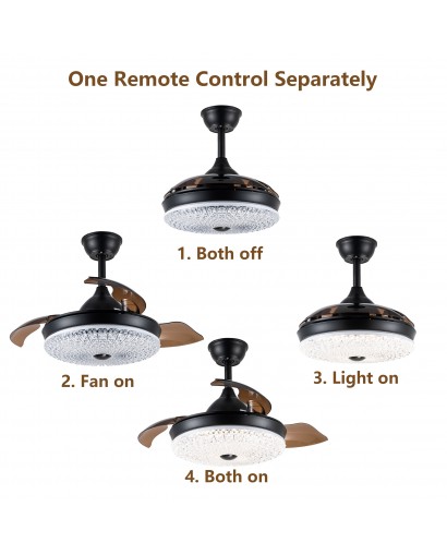 42 in. Modern Glam 5 Retractable blades Ceiling Fan and Remote Control Chandelier