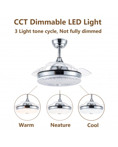 42 in. Modern Glam 5 Retractable blades Ceiling Fan and Remote Control Chandelier