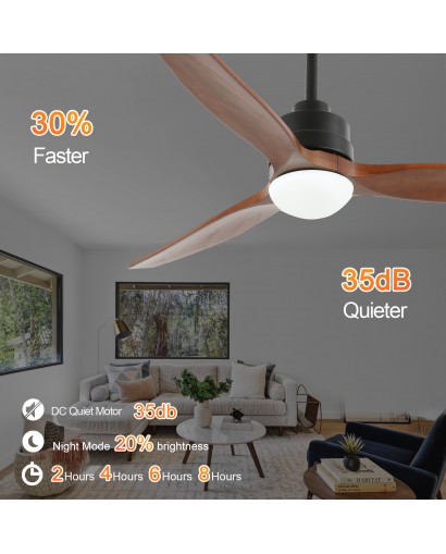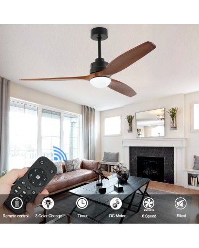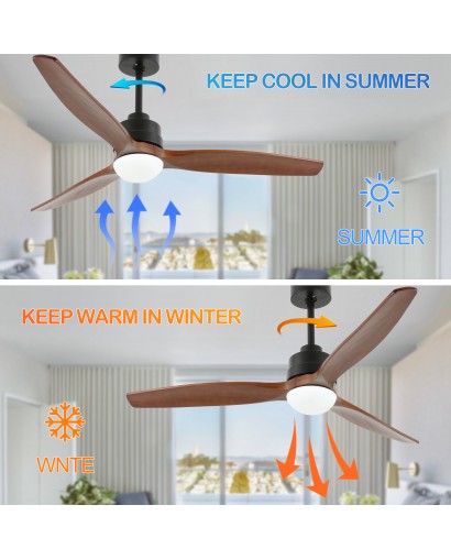 Add a stylish touch to the interior, making it a dazzling sight with the perfect combination of ceiling fan and light. Our products use DC motors, which can control the airflow and temperature on the surface of the motor more accurately than traditional AC point machines. High-quality solid wood blades combined with dimmable LED lights add more modernity to your room. 6-speed adjustable wind, the motor runs smoothly, and there is no noise throughout the process, providing a comfortable and quiet sleeping environment. The breeze is very suitable for sleeping, especially for the elderly and children, as well as for reading. Reversible fan blades push warm air down in winter to keep indoors warm and enjoy flowing air all year round.