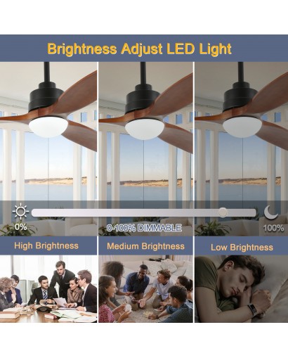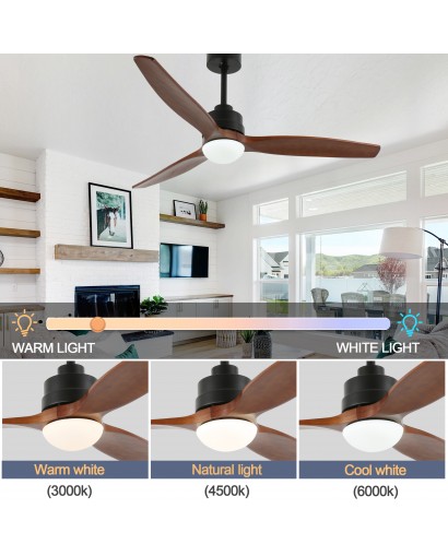 - Dimmable LED Light: LED ceiling fan is dimmable. The power of light is 15W. Color temperature is 3000K/ 4000K/ 6000K. 0%-100% dimmable brightness.