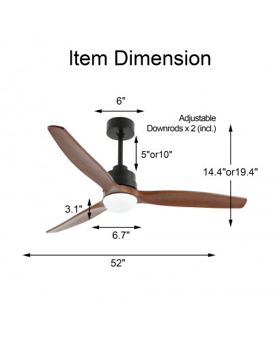 - Package Includes: Ceiling Fan with Light, Remote Control, Installation Manual, 2 Downrods (L5" and L10")