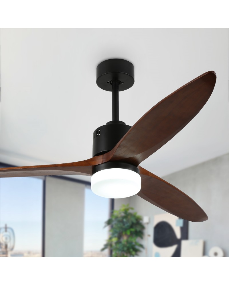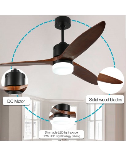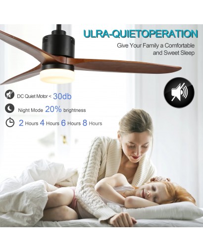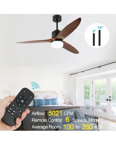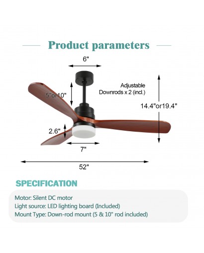 Provide you with a super quiet living environment and let your family away from noisy life with this DC motor ceiling fan. This modern ceiling fan features a DC motor for super airflow, quiet performance, longer life, and higher quality that save energy. With 3 solid wood blades, the wood grain is clearly visible and durable. Comes with two different sizes of down rods (5" and 10") to match different ceiling heights, hang it at your desired height. All operations can be controlled by the remote controller, say goodbye to the traditional ceiling fans makes your life easier.
