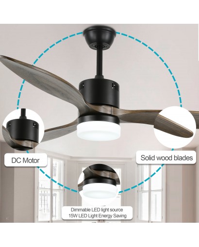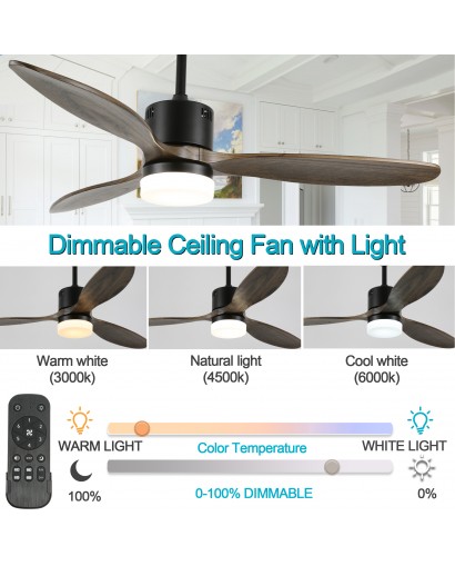 - Dimmable LED Light: LED ceiling fan is dimmable. The power of light is 15W. Color temperature is 3000K/ 4000K/ 6000K. 0%-100% dimmable brightness.