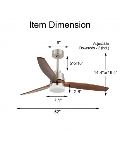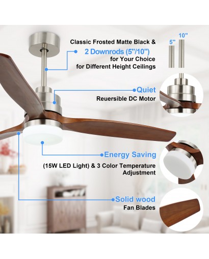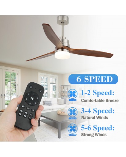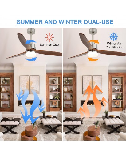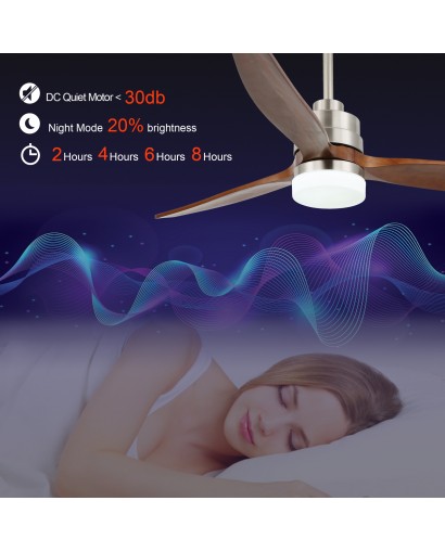 Provide a cozy and stunning ambiance with this classic retro ceiling fan. The nickel-plated finish and the combination of 3 wooden fan blades are suitable for any style of home decor. Fans and lights can be used separately. This ceiling fan light has a 2/4/6/8 hour timing function, set the timing function when you sleep, don't worry that you will forget to turn off the fan at night. Reversible blades switch the direction of the wooden ceiling fan from a downdraft in summer to an updraft during cooler winters to save energy costs. Comes with standard down rods assemblies 5" and 10", hang it at the height you want. Ideal for residential and commercial applications, it is ideal for indoor use such as living rooms, bedrooms, or outdoor covered patios, gazebos, etc.