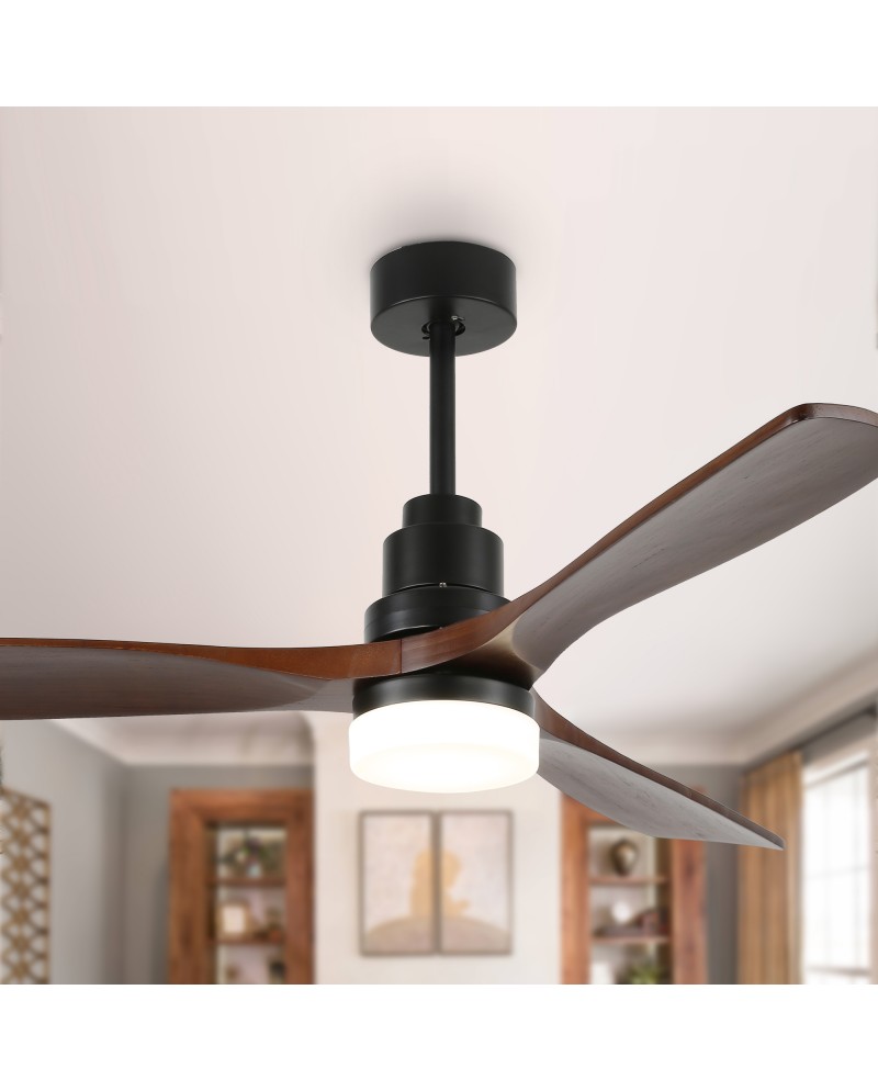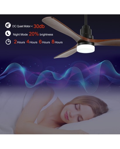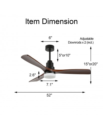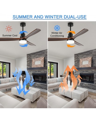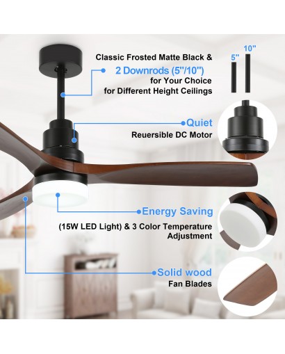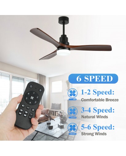 Allow for the perfect setting for your space with this 6 speeds wood ceiling fan. This ceiling fan light uses a DC motor and is more functional than traditional AC motors. The perfect combination of fan and light, which can be used individually. Come with 5" and 10" down rods for low/high ceilings. The reversible ceiling fan blades are perfect for winter use that allows you to change the direction of the fan from downdraft mode to updraft mode in winter. Stay cool in hot weather and keep airy in shady weather. Provide fresh indoor air and give you a healthy living environment.
