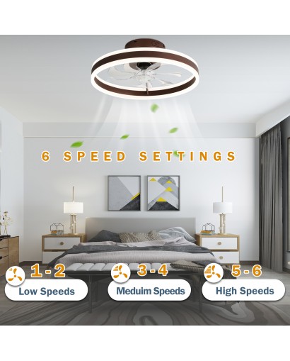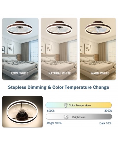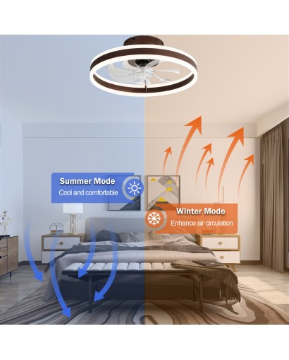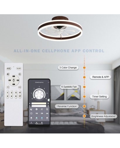 Add a strong flair of design to your room while illuminating and blowing with this ceiling fan. This ceiling fan has the function of lighting and blowing at the same time. The fan and light can be used at the same time or separately. Seven transparent ABS fan blades, six wind speeds, a silent motor, reversible blades, and intelligent control are the biggest features of this DC motor ceiling fan. Meanwhile, all the functions can be operated by a handheld remote or APP control. With a powerful DC reversible motor, this built-in ceiling fan can switch the air circulation mode from down to up in different seasons and enjoy the fresh air flowing all year round. This ceiling fan is silent during operation and has a timer function to give you a good sleeping environment.