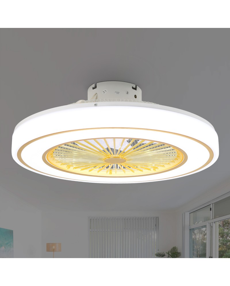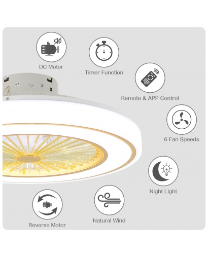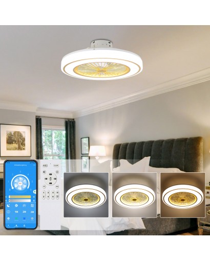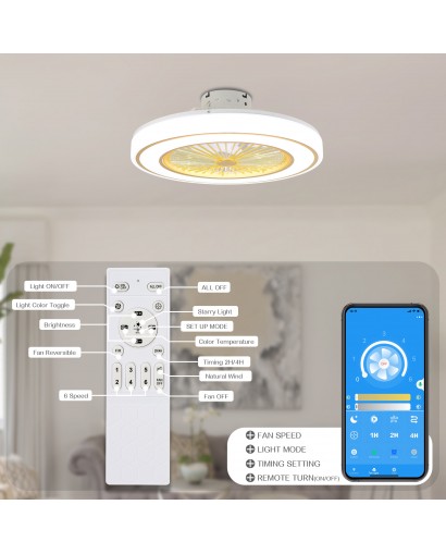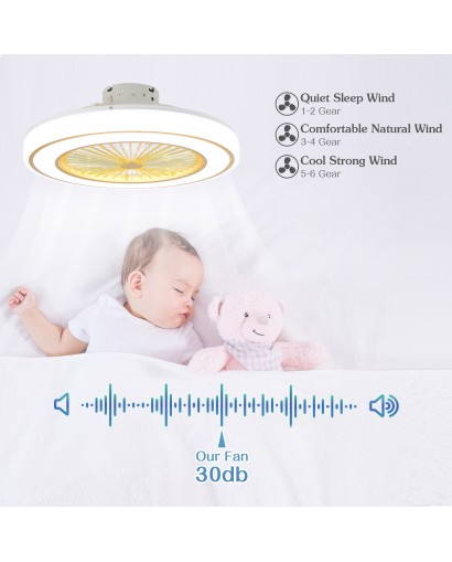 Provide a personal and stylish design for your home space with this flush-mount ceiling fan. There are six wind speeds that you can adjust to suit the current environment. With three-color dimming technology, you can switch three kinds of lights: white light, warm light, and neutral light. You can choose the color temperature light you like according to your preferences. The built-in LED light does not need to buy its own bulb, which is very convenient. All functions can be controlled by the attached handheld remote control and mobile APP. The noiseless machine creates a quiet and comfortable sleeping environment.