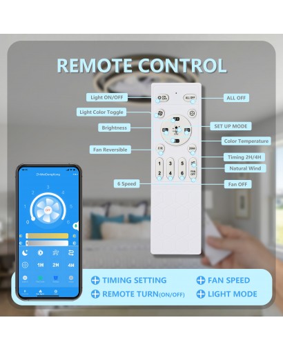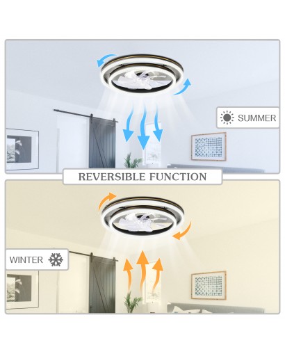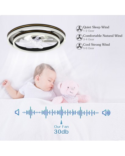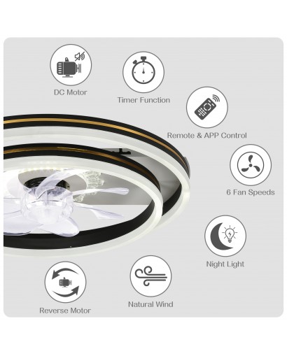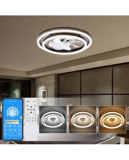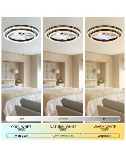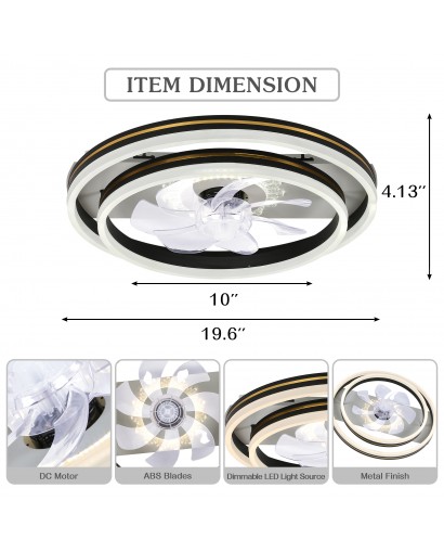 Bring a sense of style to the interior with this modern design low-profile ceiling fan. This embedded ceiling fan uses a DC motor, which saves more energy than a traditional AC motor. Smooth operation, strong airflow, no noise, with timing function to create a quiet and comfortable sleeping environment. There are three colors that can be adjusted, and you can adjust the appropriate brightness and color temperature according to your preferences. Energy-saving dual tier LED light are adopted to provide a soft LED light source without dazzling. Reversible fan blades allow you to enjoy moving air all year round. Clockwise rotation in summer keeps the room cool, and counterclockwise rotation in winter pushes warm air downward to keep the room warm, providing a comfortable living experience.