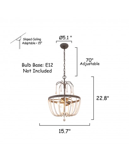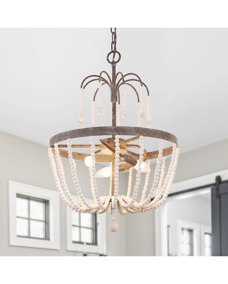 Make a lavish statement and add an eye-catching finishing touch to your space with this 3-light wood bead chandelier. This modern farmhouse chandelier uses the style of the empire silhouette with beaded accents. It hangs on an adjustable chain, you can change the length of it as your need. With the iron frame, this fixture features a ring-like silhouette with curved arms to prop up the three Edison bulbs (not included). This wood chandelier can be installed on a dimmer switch so you have the right amount of light no matter the time of day. This light will surely become a statement piece and can change the look of any room with little effort.