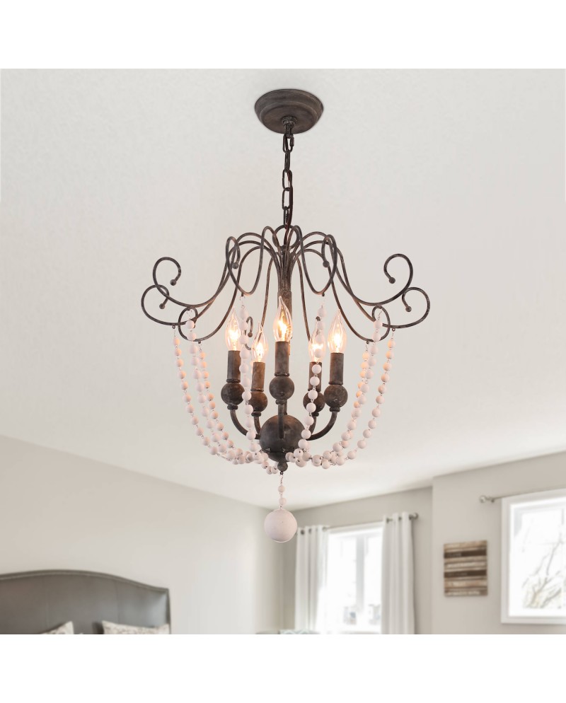 This wood bead chandelier is made of distressed finish wood beads and a metal frame, creating a classic bohemian style. The wooden beads tassels hanging at the bottom of the chandelier form a beautiful arc. It also adopts the retro rural style; and can be hung in the entrance passage, dining room, living room, lobby, kitchen island, or bedroom. You will happy to enjoy your new decoration.