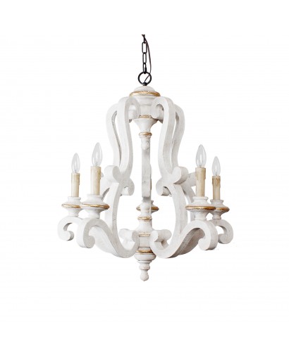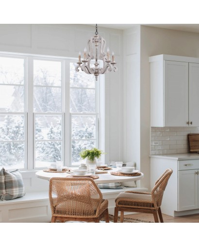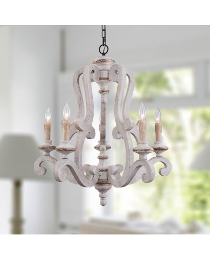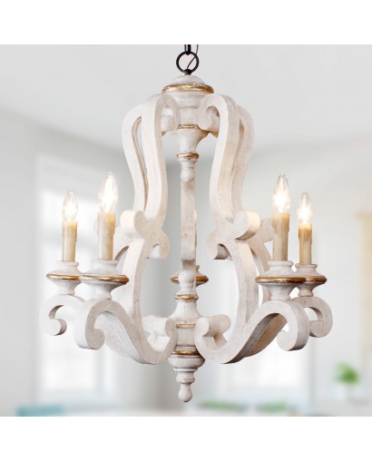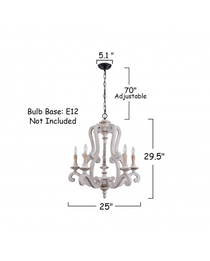 Boosts a retro style with the antique distressed white color finish chandelier. Bring cottage chic style to your room interior with this wood and metal farmhouse chandelier pendant light. The perfect combination of wood and metal, fully expressing unique style and practical durability, perfectly blends with your retro home style. Candelabra base with five E12 lamps (bulb not included) brings soft lighting and a warm atmosphere to your space. Enjoy a cozy setting and a delicious dinner with your family at the end of a busy workday.