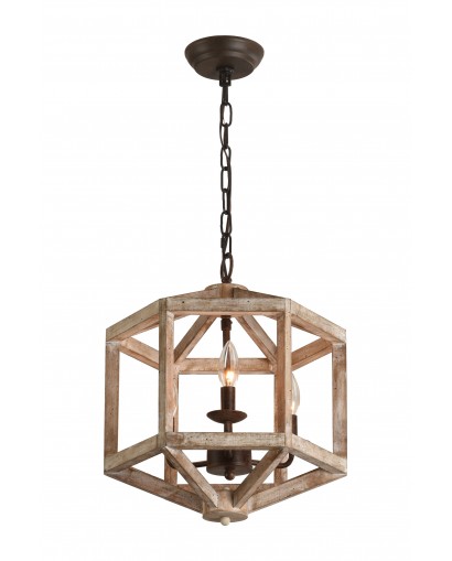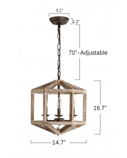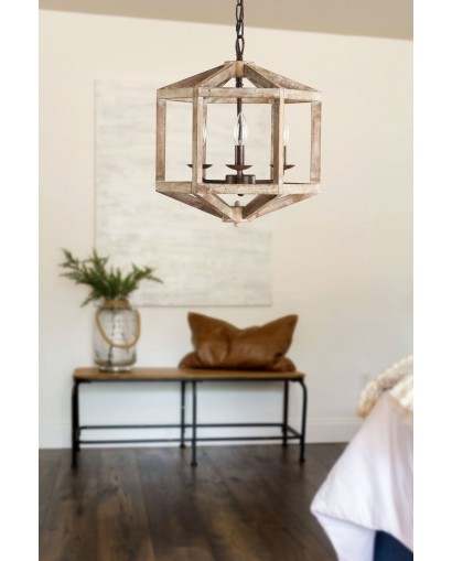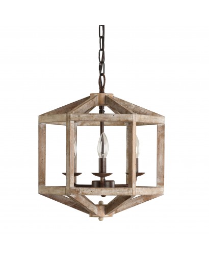 Eye-catching glamour and elegance are showcased in this antique cage-shaped wooden chandelier. The combination of the metal lamp base and the wood frame shows a unique look. The weathered wood finish and distressed metal rust chain give this chandelier a historic feel. Featuring a unique cage design with three candelabra lamps inside (bulbs not included), it's perfect for the rustic cottage aesthetic. Depending on the type of light bulb, the shade of the cage design creates a soft, shimmering glow for a comfortable living environment.