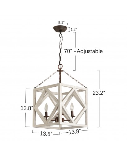 Brighten up your home space with this 4-Light wood candle chandelier pendant Light. This rectangular wood pendant light features rustic wood as the overall frame material for the lamp, bringing out the elegance and sophistication of the room. It hangs from a long 70" adjustable chain and four decorative suspenders. This chandelier pendant light requires 4 bulbs (not included) to provide ambient light to your space, making it enjoyable and relaxing to enjoy a delicious dinner with family and friends in soft lighting after a busy day at work. Available in two color finishes to suit most decor styles, it's the best choice for home decor!