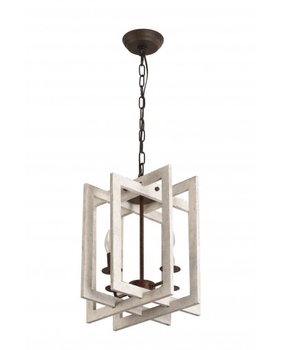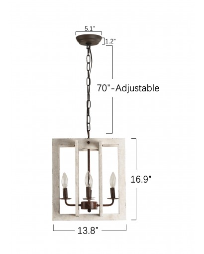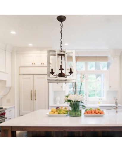 Farmhouse Chandelier 4-Light Lantern Geometric Light with Wood Accents