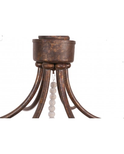 Make a statement in any interior design with this sophisticated indoor handmade rust chandelier from our store. With a distressed wood finish, the white wood bead creates a charming and vintage home ambiance. The chandelier will enhance the look of your contemporary farmhouse or the traditional elements of your interior decoration. Illuminate your home space with six candelabra-style lights inside while keeping you cozy and comfortable.