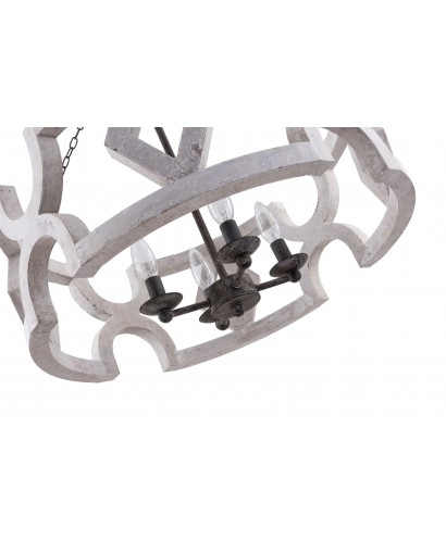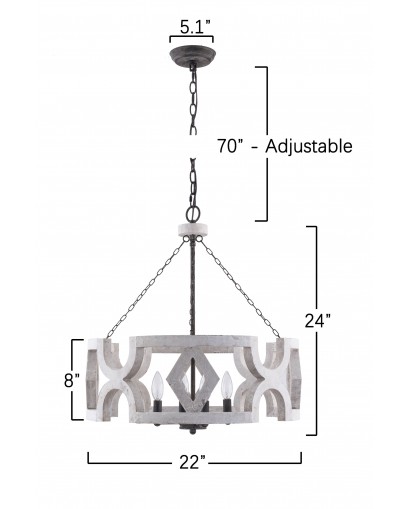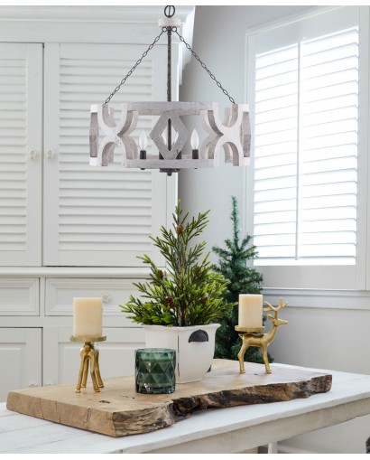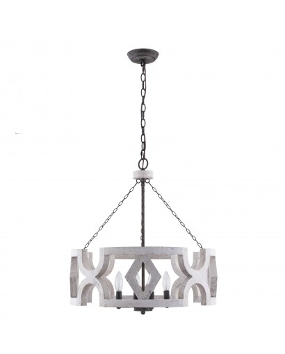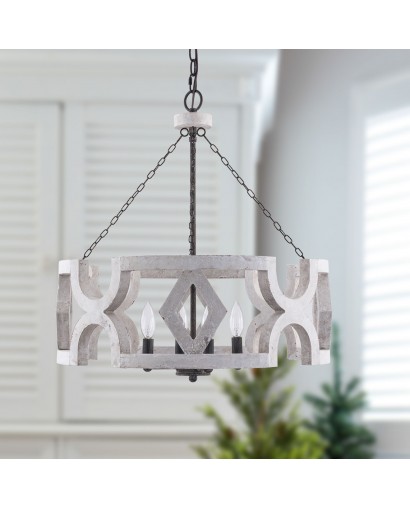 Antique 4-Light Wood Ceiling Lighting Rustic Farmhouse Chandelier, Weathered Wood, Distressed White