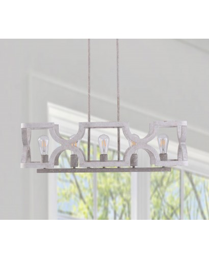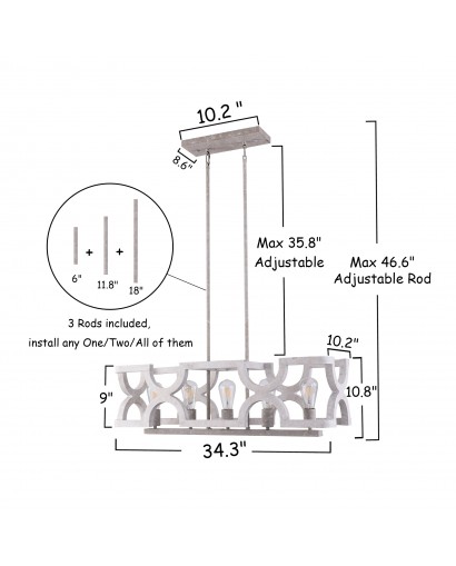 Light up your living space with this French rustic chandelier. The rectangular wooden light, complete with metal chains and hollow-out distressed wooden frames, adds a rustic vibe to the home space, creating an imperial silhouette. Equipped with 3 down rods of different lengths (6 ", 11.8 ", 18 "), mount any/both/all at your desired height. Candlestick with 5 bulbs (not included) inside to illuminate your space. This chandelier is compatible with dimmer switches (excluding dimmer bulbs and dimmer switches). Perfect for living room, kitchen, dining room, foyer, etc.