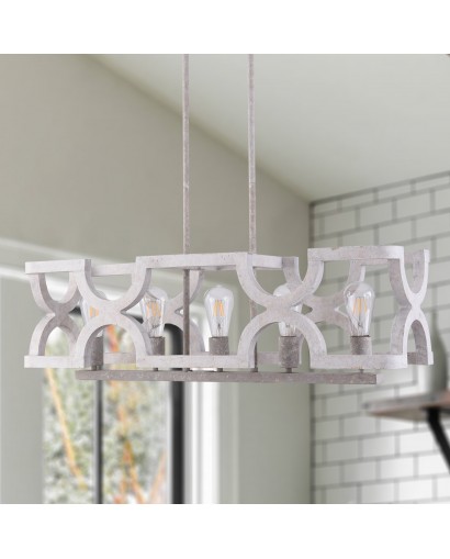 Farmhouse 5-Light Candle Style Chandelier with Wood Accents for Dining Room, Weathered Wood, Distressed White