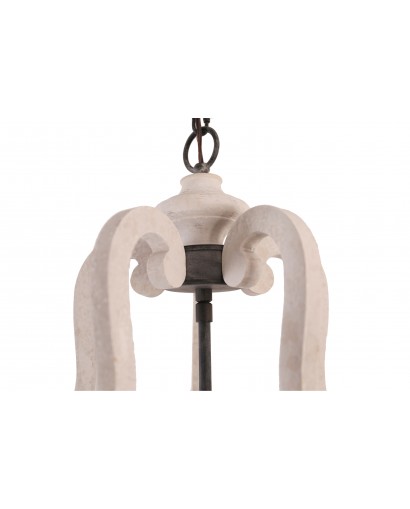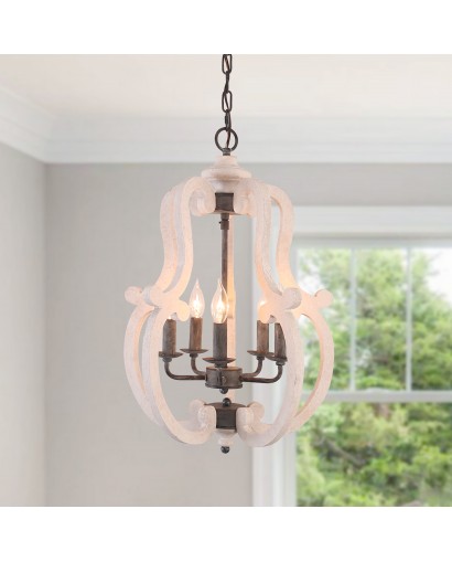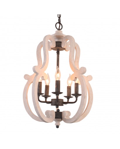 5-Light Farmhouse Chandelier with Wood Accents Lantern Pendant Light, Weathered Wood, Distressed White