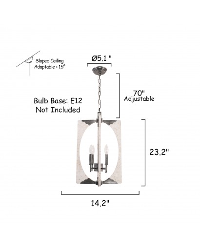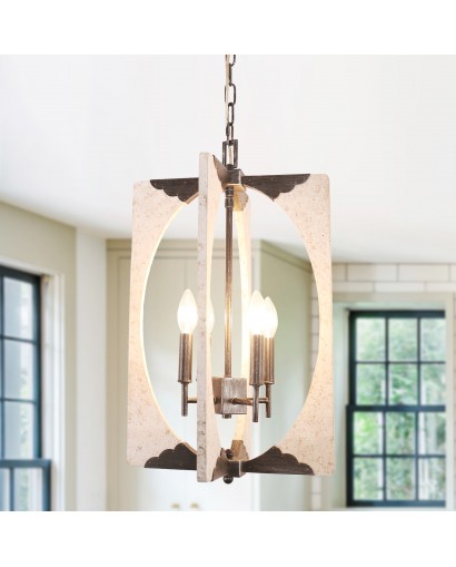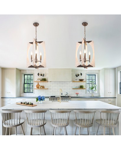 Light up your room with the farmhouse chandelier. This chandelier pendant light is finished in black rust and polished chrome with distressed white and weathered wood. The chandelier is used as a light source and also as a decoration of the room, reflecting the style and taste of the owner of the room. 4 bulbs (not included) to light up your room, compatible with dimmable switches and dimmable bulbs (dimmer switches and dimmable bulbs not included). This functional and beautiful pendant light is perfect for kitchens, bedrooms, living rooms, hallways, dining rooms, foyer, etc.