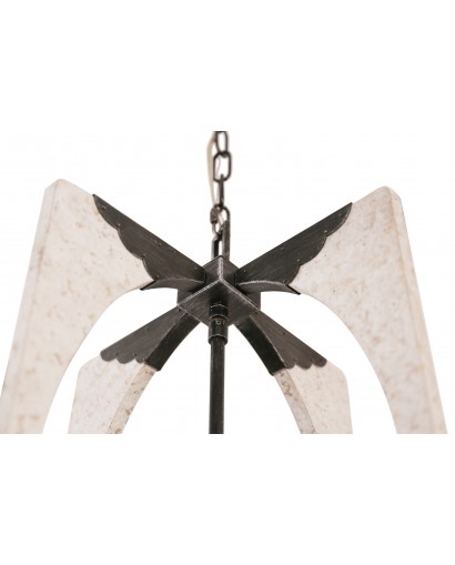 Cusp Barn 4-Light Mid-century Empire Chandelier Carved Lantern Wood Light for Dining Room