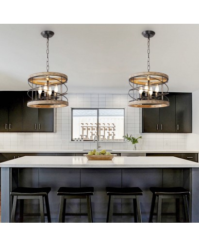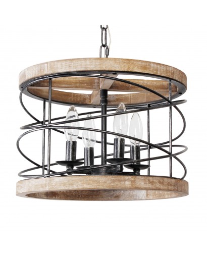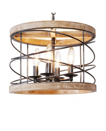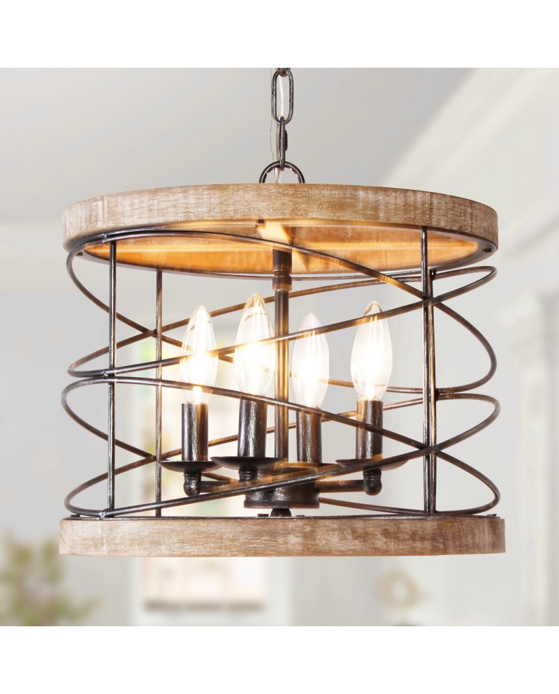 Bring vintage style to your room with this wood and iron farmhouse chandelier. Compatible with pitched roofs, in a distressed white finish, this pendant light combines farmhouse style with modern furniture. Requires 4 bulbs (not included) to light up your room, the brightness of the light depends on the type of bulb. Enjoy a delicious dinner with family and friends in the soft light on a busy night. The chandelier has a rough texture, creating a nostalgic charm. Perfect for your dining room, living room, bedroom light, corridor, and other spaces you like.