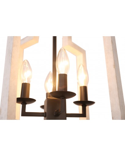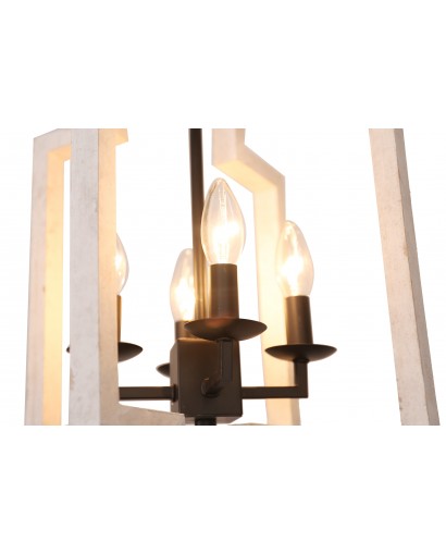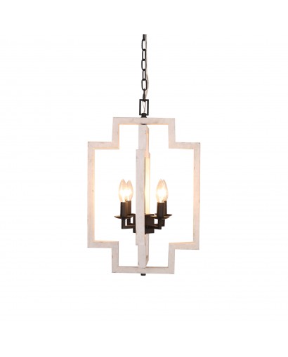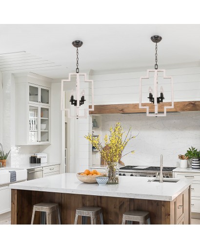 Farmhouse Black Metal Finish Wood Chandelier Adjustable Chain Pendant Light, Weathered Wood, Distressed White