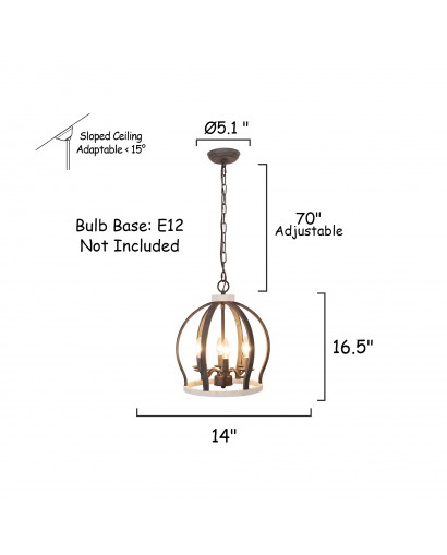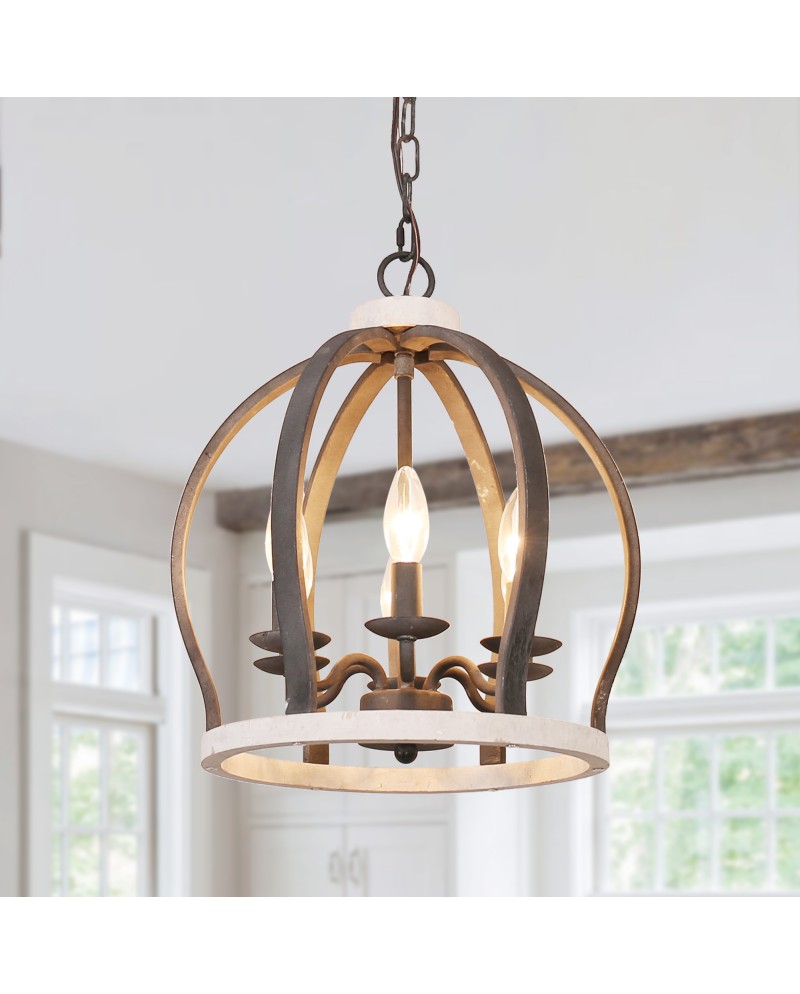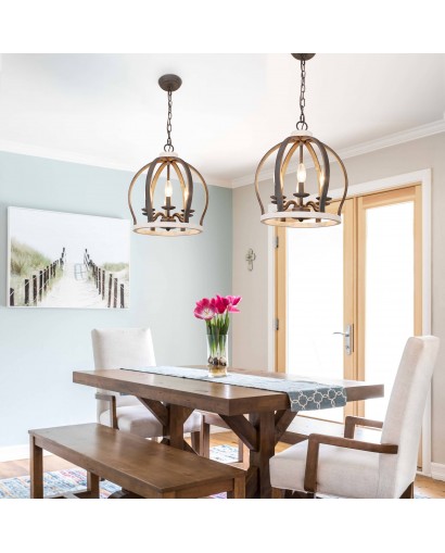 Provide a cozy and comfortable home atmosphere for your indoorsy life with this wood chandelier. This chandelier has a retro cage design with a metal finish frame to show a modern and stylish design without losing the retro aesthetic. Requires 6 E12 bulbs (not included) with a distressed candlestick base made of metal. Put it on the dining table and enjoy a delicious dinner with your family in the soft light at night. The included chain can be adjusted to adjust the height according to your preference, which is suitable for ceilings of various heights.