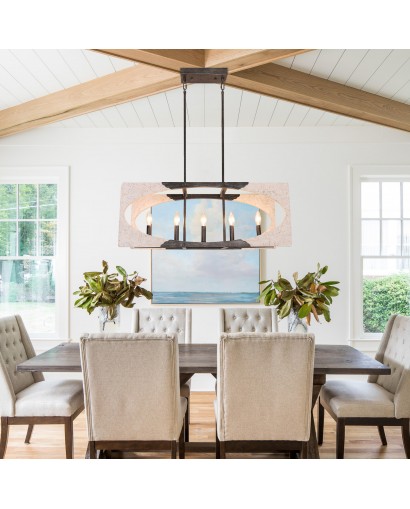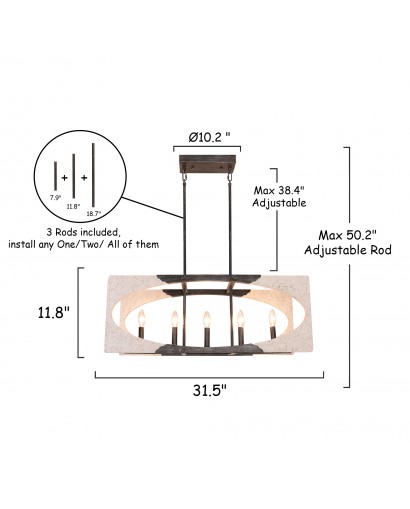 Provide ample illumination to your room with this farmhouse-style chandelier. This 5-light chandelier has a transitional design with constructed clean lines and a rectangular frame. Come with three different sizes of down rods(7.8-inch, 11.8-inch, 18.7-inch), which install any one/ two/ all of them at your desired height. Perfect for a kitchen, dining room, living room, bedroom, foyer, hall, entry, or restaurant.