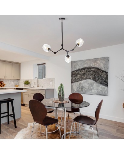 Provide a minimalist and upscale living ambiance with this chandelier from Cusp Bran. This chandelier with a unique character design is great for public spaces such as living room, kitchen, dining room, etc. The arm of this chandelier is made of metal with a smooth finish. At the end of each arm is a colored shade. Add an elegant and stylish living atmosphere to your room space with gradient glass shades. 40-watt bulbs (not included) keeps the room well-lit. This exquisite chandelier pendant light is your best choice!