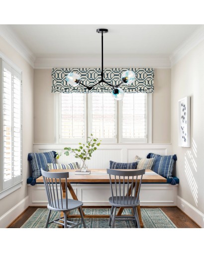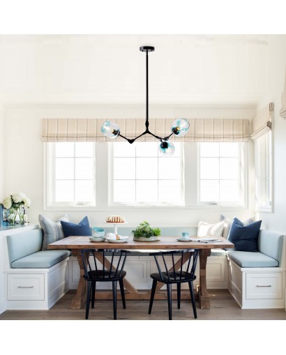 Provide a minimalist and upscale living ambiance with this chandelier from Cusp Bran. This chandelier with a unique character design is great for public spaces such as living room, kitchen, dining room, etc. The arm of this chandelier is made of metal with a smooth finish. At the end of each arm is a colored shade. Add an elegant and stylish living atmosphere to your room space with gradient glass shades. 40-watt bulbs (not included) keeps the room well-lit. This exquisite chandelier pendant light is your best choice!