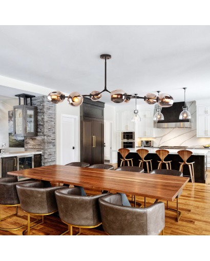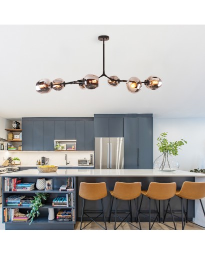 Create a modern and fashionable interior of your room space with this mid-century eye-catching chandelier pendant light from Cusp Bran. This sputnik-style chandelier features eight bulbs(not included) with orb-shaped glass shades. The adjustable down rod lets you adjust the height you want. For your home life to provide a comfortable home atmosphere.