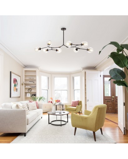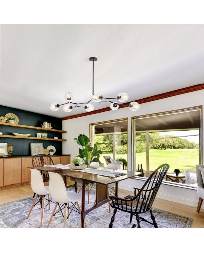 Create a modern and fashionable interior of your room space with this mid-century eye-catching chandelier pendant light from Cusp Bran. This sputnik-style chandelier features eight bulbs(not included) with orb-shaped glass shades. The adjustable down rod lets you adjust the height you want. For your home life to provide a comfortable home atmosphere.