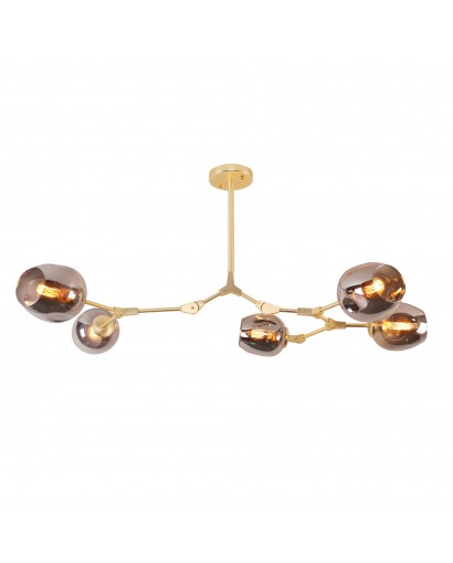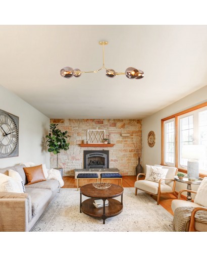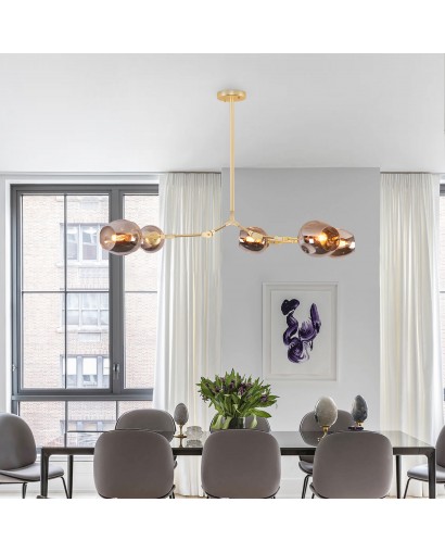 Bring sparkling style to your decoration with this charming pendant light. This chandelier pendant light is made of high-quality glass lampshade, with soft and even light transmission, which makes the light charming and elegant, creating a healthy and comfortable lighting environment for your space. With the blessing of five bulbs (not included), you can get enough light in the dark. Lampshades of different colors add more vitality to your home decoration and make you enjoy life more. The metallic look also gives a contemporary look to the pendant light fixture, perfect for kitchen islands and hallways, and more. If you are looking for a modern pendant light, this 5-light pendant light is your best choice!
