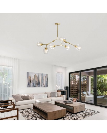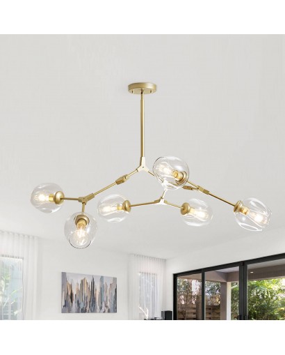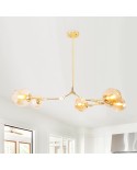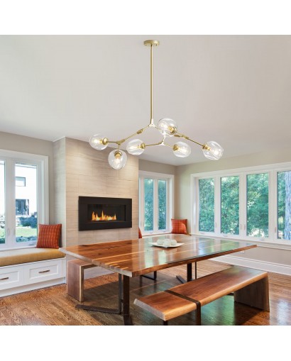 Add to glamorous home interiors with this splendid chandelier pendant light. This 6-light kitchen island pendant light fixture features a metallic look and glass shade to bring charming style to your home decor. The minimalist look is suitable for a variety of interiors. Glass shades of different colors make the space more vibrant. The canopy is made of high-quality metal, which is heavy-duty and sturdy. Requires 6 bulbs (not included) to light up your home space and not be afraid even in the dark. At the end of a busy day at work, enjoy the most pleasant time with your family in the evening.