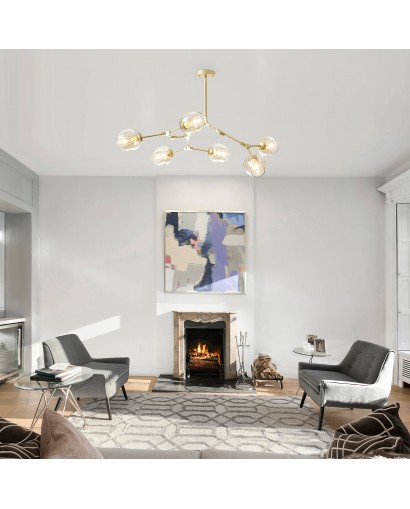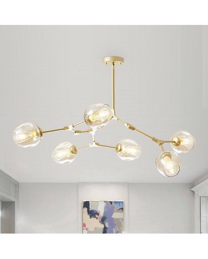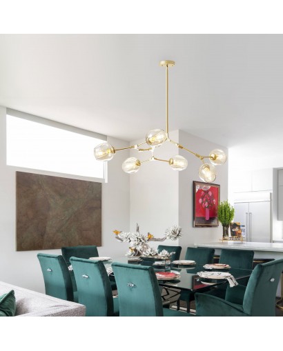 Add to glamorous home interiors with this splendid chandelier pendant light. This 6-light kitchen island pendant light fixture features a metallic look and glass shade to bring charming style to your home decor. The minimalist look is suitable for a variety of interiors. Glass shades of different colors make the space more vibrant. The canopy is made of high-quality metal, which is heavy-duty and sturdy. Requires 6 bulbs (not included) to light up your home space and not be afraid even in the dark. At the end of a busy day at work, enjoy the most pleasant time with your family in the evening.