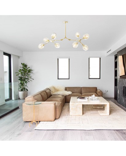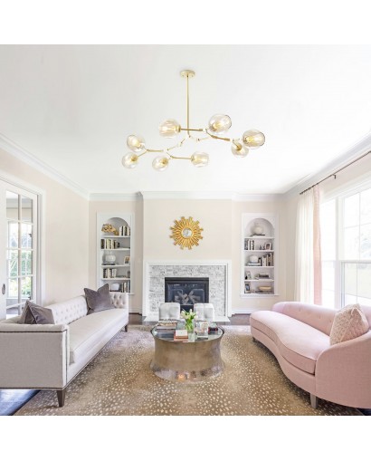 Provide a cozy and stunning ambiance with this minimalist style pendant light. This 8-light chandelier pendant light is the perfect combination of modern and industrial. The metal-finished frame is full of industrial flair, combined with a coloured glass shade to bring home decor to life. Space decoration should be more artistic, artistic home environment, quietly create romantic feelings. 8 light bulbs (not included) have their own aura, reflecting the happy time of hospitality at home. Equipped with a height-adjustable boom, you can hang the height you want and adjust the height according to your needs, making your life more convenient. Such a beautiful and practical pendant light is your best choice.